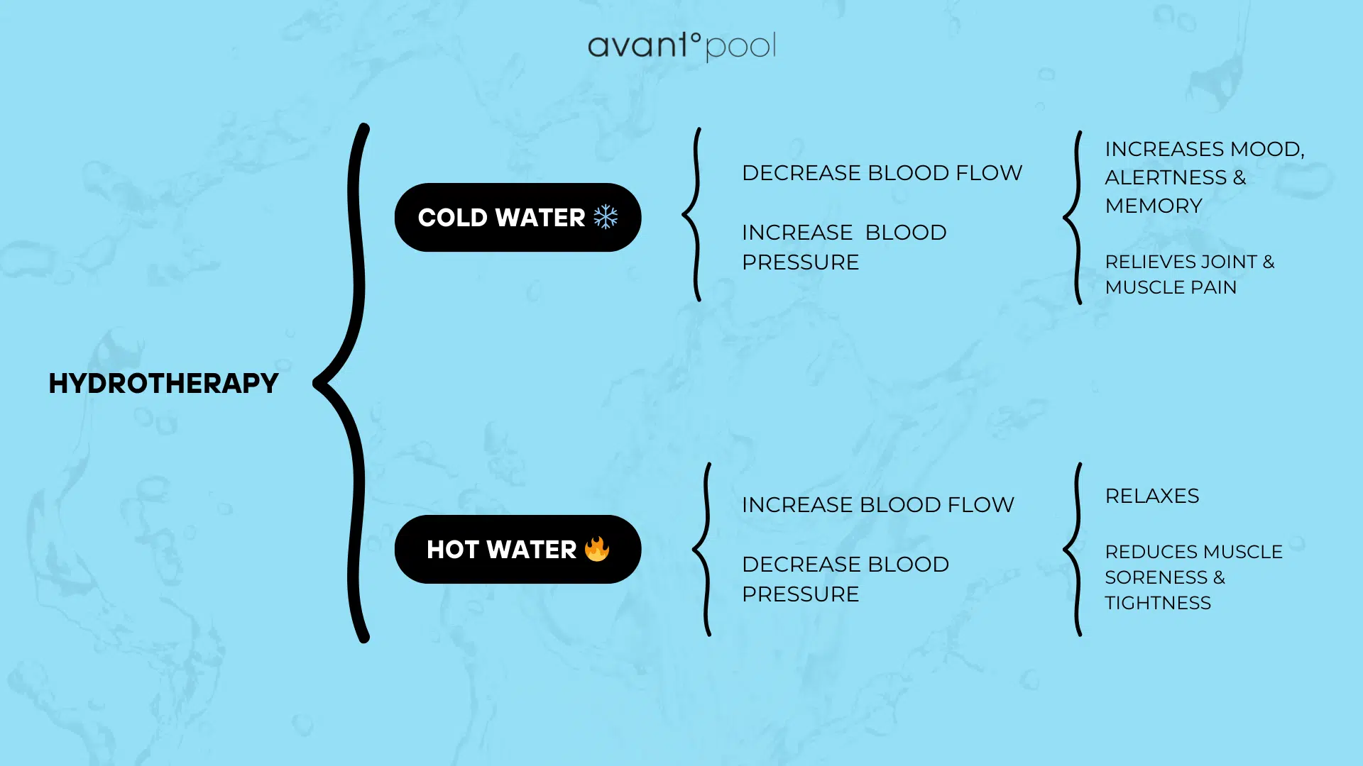 - Cold water tightens vessels, contracts muscles, reduces inflammation, and eases swelling.