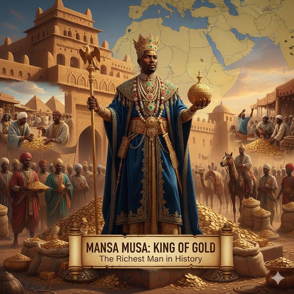 On a Pilgrimage to Mecca in 1324 AD, Mansa Musa brought so much gold with him that his visit resulted in the collapse of gold prices in Egypt (kemet) & Arabia. It took 12 years for the economies of the region to normalize.